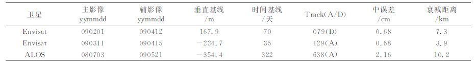 表 1 研究中所选用的SAR卫星数据参数 Table 1 The SAR satellite data used in this work |