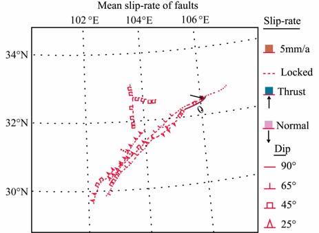 图 2 龙门山断裂带几何模型 Fig. 2 The fault geometry of Longmenshan faults |
