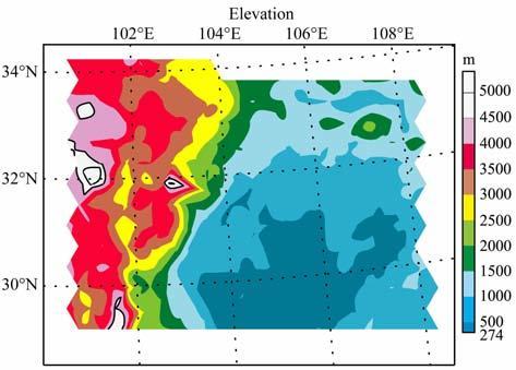 本文采用了ETOPO5′×5′的数据得到研究区域地形如图 3分布.