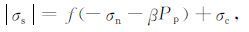 其中σs 是断层面上的剪切应力,σn 是垂直于断层的正应力,f是有效摩擦系数,β 是Biot系数(在孔隙岩石中接近1),Pp 是孔隙压力,σc 是内聚力.