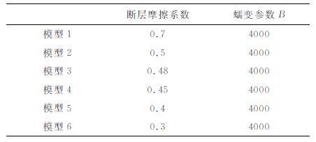 表 2 有限元模型中研究的断层摩擦系数和蠕变参数值 Table 2 The fault friction and creep parameters in this research |