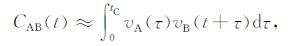 研究表明[26-31],由散射波场(例如环境噪声、散射尾波)的互相关函数可以提取出台站间的格林函数.假设两个台站分别位于A、B两点,则有如下关系成立: