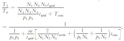(1) 并行计算平台的性能(tsettle, tcom).并行计算平台的性能越好,建立通信、传输数据所需要的时间越短,并行加速比越快.理论上,当tsettle/tgrid =0,tcom/tgrid =0,即建立通信、传输数据不花费时间,此时T1/Tp 达到理想值p1p2;