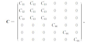 对于一般的完全各向异性介质中的弹性波传播方程,四阶弹性张量C含有21个独立参数[26],非常复杂,我们很难分析弹性波在这种介质中的传播规律.同时,地球介质含有较多的定向排列的裂隙和薄层结构,使得在这种介质中传播的地震波具有明显的横向各向同性特征,所以TI介质是目前地球物理领域内研究最多的弹性介质之一.