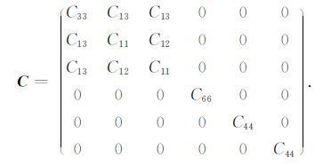 特别地,当θ =0,φ = π/2时,TTI介质变化为VTI介质;当θ = π/2,φ = π/2时,TTI介质变化为HTI介质,其弹性张量为