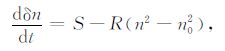 在本文中只考虑反馈不稳定性的线性阶段,而不考虑电子浓度变化与背景电子浓度相当的情况,所以假设电子浓度变化远小于背景电子浓度(δn$ \ll $n0),令τ =4hRn0/(sinIVAI),对(10)式进行Fourier变换得到