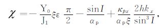 下面简要分析电离层分别处于高电导率与低电导率情况下的色散关系.令β0 =ξ+iχ (相应的ω =υ+iγ ),其中ξ=υ·2h/(VAIsinI)为归一化角频率,χ=γ·2h/(VAIsinI)为归一化增长率,均以VAIsinI/2h为单位.在ξ 邻域内将Bessel函数展开,并根据其性质[15],式(15)中Bessel函数及其导数可写为如下形式: