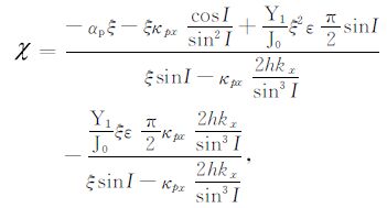 将以上关系代入(1)式,令β = β0e-z/2h、β0 =2ωhcscI/VAI、η=βsinI、η0 =2ωh/VAI,其中ω 表示波的角频率,可以看出β0 表示以2hcscI/VAI 为单位的归一化角频率,得剪切模式的解为