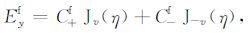 其中,C±a, f 分别为剪切与压缩模的系数(a、f分别代表Alfven波模和压缩波模),v= √[4h2(kx2 +ky2)-η02ε2],J表示Bessel函数.这里假设4h2(kx2+ky2)>η02ε2,当η→0,即z→∞时,J-v(η)→∞.这样为保证解的合理性,需要C-f =0,此时压缩波的解给出波场随高度迅速衰减[20],这也对应了压缩波波导理论,即压缩波在电离层波导内沿水平方向传播.