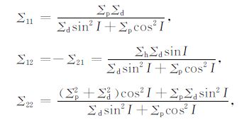 Σd, Σp, Σh 分别为电离层高度积分纵向、Pederson、Hall电导率,而Σmn(m,n为电导率张量中元素的位置)可理解为等效电离层电导率,代替了以往磁力线垂直于电离层时电离层Pederson、Hall电导率,此时场向电流对电离层边界贡献隐含在等效电离层电导率中.一般情况下纵向电导率远大于Pederson和Hall电导率,即Σd $\gg $Σp、Σh.