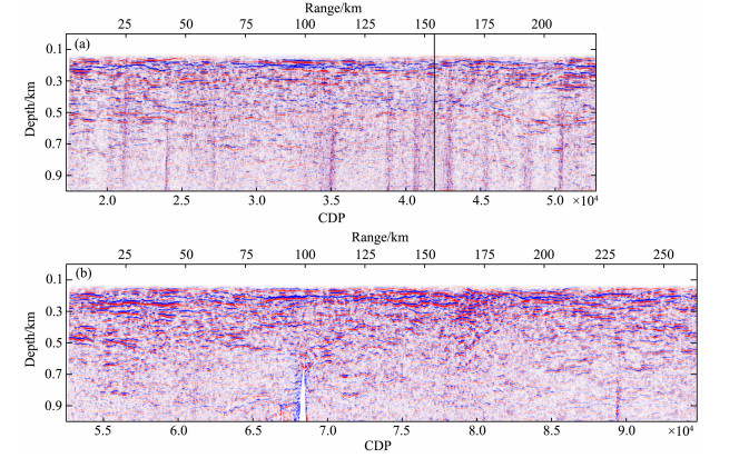 2003年Holbrook等[1]成功地将反射地震方法引人到海水温盐细结构的研究当中,从而开创了一门新学科—地震海洋学(Seismic Oceanography).与传统的海洋学观测手段不同,地震海洋学采用‘走航观测’的方式,测量速度快、横向分辨率高、可以实现全深度成像,自其诞生伊始就迅速得到广大海洋学家的普遍关注和接受[2-3].地震海洋学可以提供海水波阻抗(声速乘以密度)的垂向梯度在震源子波时间尺度上的平滑图像[4],因而在认识海洋学现象的空间结构及横向展布方面具有无可比拟的优势.目前为止,地震海洋学已经在识别诸如内波[5]、地中海涡旋[6-7]、潜流[8]、海洋锋面[1,9]、温盐阶梯[10-11]等多种海洋学现象方面取得了良好的应用.同时,可以使用相对成熟的反射地震学反演方法从地震数据反演温度、盐度等海洋学参数[12-15]以进行进一步的研究.另外,在反射同相轴与等密线平行或重合的假设前提之下还可以直接从地震剖面出发计算内波谱[16-20]、混合率[21]、地转流速的垂向梯度(地转剪切,Geostrophic Shear)[22]等海洋学参数.