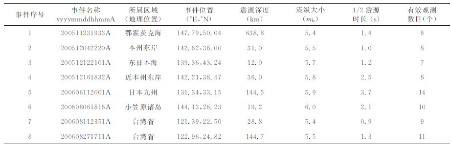 表 1 事件信息(来自Havard CMT,http://www.globalcmt.org/CMTsearch.html) Table 1 Events information (FromHavard CMT, http://www.globalcmt.org/CMTsearch.html) |