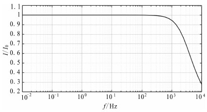从图 6可以看出,发送频率为1 KHz,发送电流下降了0.05倍.到了10 KHz时,这个发送电流不到低频时的0.3倍.