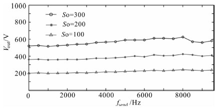 图 8 不同发送频率下的输出电压曲线 Fig. 8 Output voltage curve under different sending frequency |