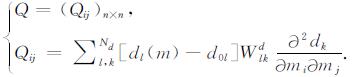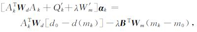 对(2)式求有关αk的导数, 并取极小值(∂Φ/∂αk=0), 则有