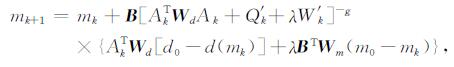 但是, 若基向量是线性相关的, 则矩阵可能是奇异的.因此, 首先需要将这些向量正交化.选择好基向量后, 迭代近似解(5)式中的转换矩阵AkT WdAk, Q'k和W'm矩阵的维数就小的多, 当给定阻尼因子λ后, 可用奇异值分解法求逆矩阵的方法求解, 或者用共轭梯度法求解也是很有效的.具体计算步骤如下: