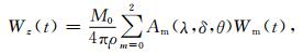 上式中Am(λ, δ, θ)为方向性系数,ρ为介质密度,δ为断层面倾角,λ为错动方向倾角,θ为断层走向的方位角,Wm(t表示远场P波的地球介质响应.