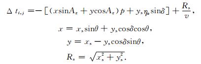 上式中Δti, j表示面元(i, j)的破裂开始时间相对于初始破裂点(i, j)的时间延迟,Az为台站的方位角,Xs和ys分别表示面元(i, j)相对初始破裂点(is, js)沿x方向(断层面的走向)和沿y方向(断层面的倾向)的距离,Rs表示面元(i, j)相对初始破裂点(is, js)的直线距离,v表示破裂的传播速度,Wm(t-Δti, j)和Vm(t-Δti, j)分别表示远场P波和SH波的地球介质响应.