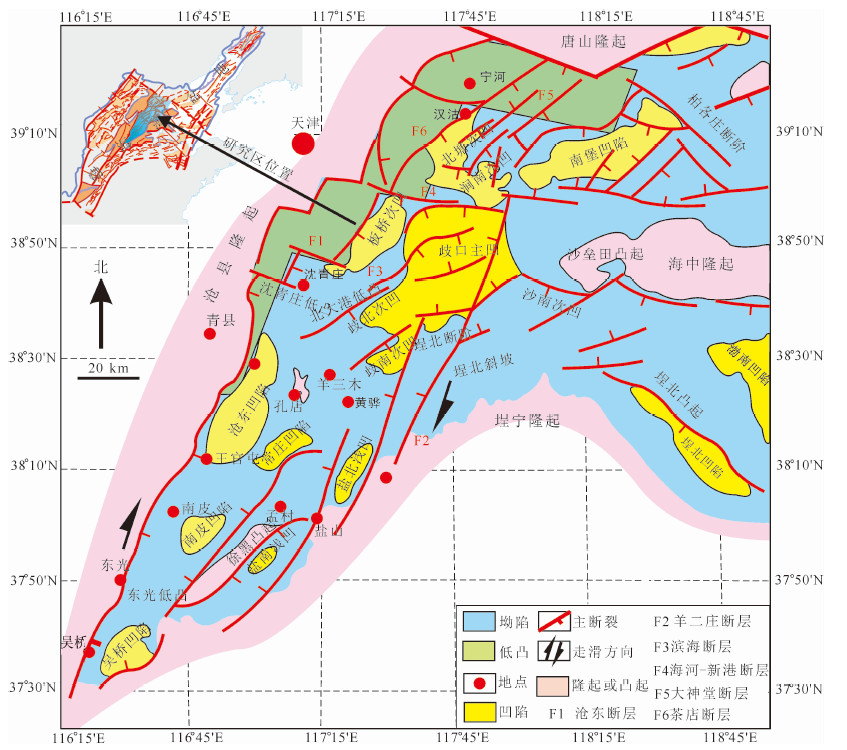 关于黄骅坳陷新生代盆地的形成,前人观点较多.漆家福等[8]认为坡坪式沧东断层的伸展作用影响了坳陷的沉积建造及构造样式,从而控制了黄骅坳陷新生代坳陷的形成.任建业等[1]认为以兰考-聊城断裂带和郯庐断裂带为边界的斜向拉张导致了黄骅坳陷新生代盆地的形成.而李三忠[5]则认为黄骅坳陷是兰聊-沧东断裂带内部断陷,受西界基底中的沧东断裂系和东界兰考-聊城-羊二庄断裂系控制,构成了可以和中国东部重要的北北东向郯庐断裂带相提并论的重要断裂带[34].
