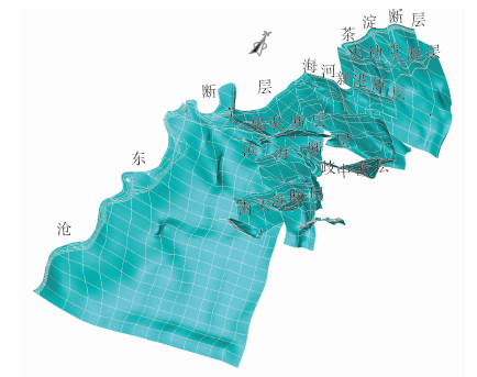 图 3 黄骅坳陷模型中断层的空间形态 Fig. 3 Spatial model of faults in the Huanghua Depression |