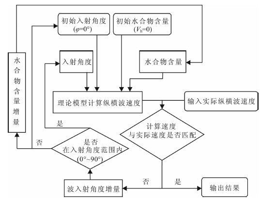 图 6 纵波和横波速度联合计算水合物饱和度流程图 Fig. 6 Flow charts of calculating gas hydrate saturation using both P-wave and S-wave velocities |
