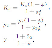 端元Ⅱ中,各弹性参数利用简化的三相介质模型来计算[5],利用Voigt-Reuss-Hill[19]平均来计算矿物颗粒间弹性参数,然后用Pride[20]公式来计算干燥沉积物骨架的弹性模量: