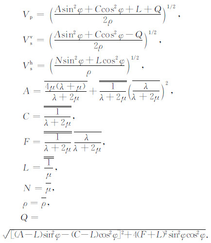 式中,α0和β0分别为φ=0°时的纵、横波速度.