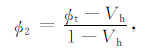 基于2.1节的速度模型,当裂隙为垂直和水平时,利用纵波或横波速度都可以计算水合物饱和度.由于水合物密度略微小于海水的密度,利用密度计算孔隙度近似等于地层总孔隙度[25],得到的孔隙度为饱和水孔隙度与裂隙充填水合物孔隙度的综合体现.当裂隙内充填水合物体积分数(Vh)增加时,饱和水孔隙度(ф2)降低,即