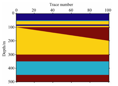 为了测试上述方法,本文设计了两个模型进行检验:(1)水平和楔形地层模型,用以检验本文方法在弹性参数范围有重叠情况下识别岩性的能力和描述薄层的能力;(2)MarmousiⅡ模型,用以检验本文方法描述地下复杂构造空间形态的能力.