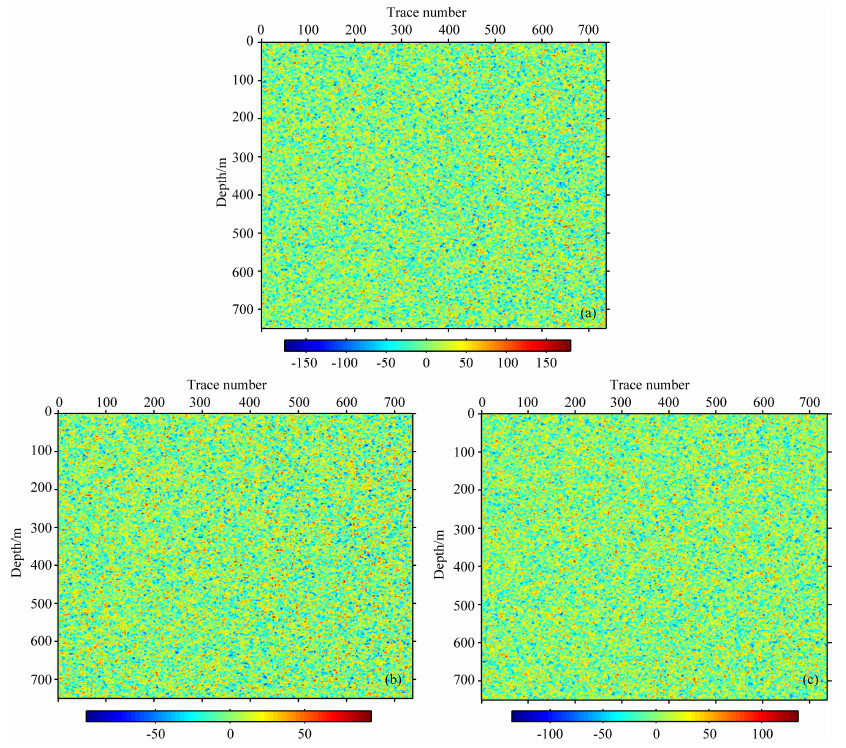图 9 5%的反演误差 (a)纵波速度误差;(b)横波速度误差;(c)密度误差. Fig. 9 5%inversion error (a)P-wave velocity error; (b)S-wave velocity error; (c)Density error. |