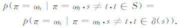 设关于岩性π的随机场是关于邻域系统δ的马尔科夫随机场,ω为关于岩性π的分类标号.马尔科夫随机场的性质可以描述为