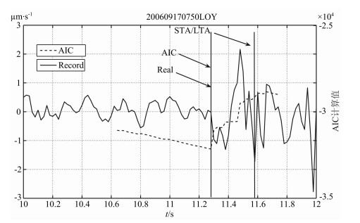 其中,k的范围为地震图某窗长内所有的采样点,var表示方差.震相到时对应于窗长内AIC函数的最小值.