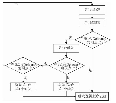(5) 等待下一个台站触发并用Delaunay三角剖分判别是否是干扰信号.