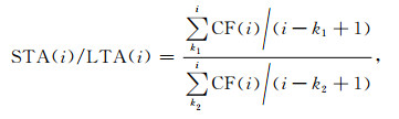 (3) 利用公式(2)等步长移动长窗和短窗(根据计算速度需要可取1个或者若干个时间间隔)并实时计算STA/LTA数值;