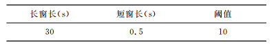 表 1 STA/LTA窗长及阈值参数选取 Table 1 Time windows and threshold-trigger value |