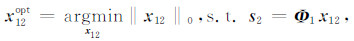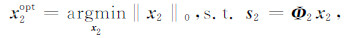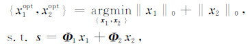 式中,‖·‖0为l0范数,建立针对信号稀疏程度的一种度量.优化问题(1)本质上是通过对信号s1进行超完备变换,获得在字典Φ1中非常稀疏的表示系数x1.