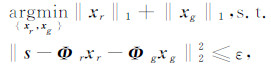 式中,xr为体波sr在字典Φr中的表示向量,xg为面波sg在字典Φg中的表示向量;ε表示信号重建的误差门限,选择合理的误差门限参数,可使该优化问题在噪声干扰以及数据缺失的情况下仍然能够取得合理的稀疏解.