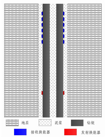 图 1 随钻声波测井物理模型 Fig. 1 The plane of acoustic LWD model |
