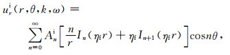 钻铤与地层间的环形流体空间的声场既有入射场又有反射场,其位移uro及声压pfo为: