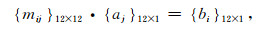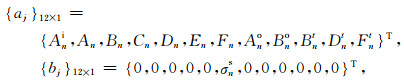利用这12个边界条件可以将以上势函数假设解中的待定系数解出来.将边界条件写成矩阵形式为: