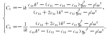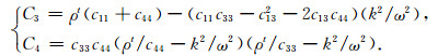 此式即为频散方程.令c11=c33,c44=c66,c13=c11-2c66,C1=C2=0,则横向各向同性介质退化为各向同性介质.