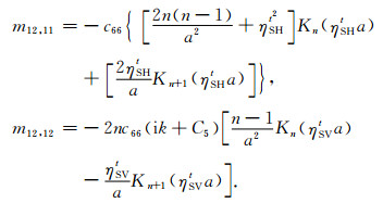 2.4 横向各向同性介质中的多极声场横向各向同性介质中P波和SV波耦合,SH波是独立的,而且由于地层无限大,则声场只有入射场而无反射场[3],其势函数的多极声场解设为[12]: