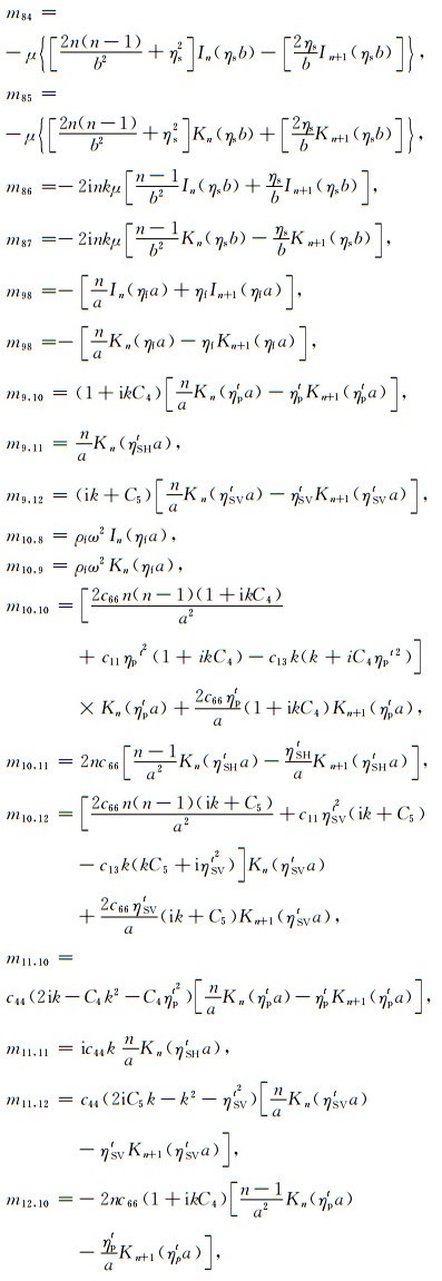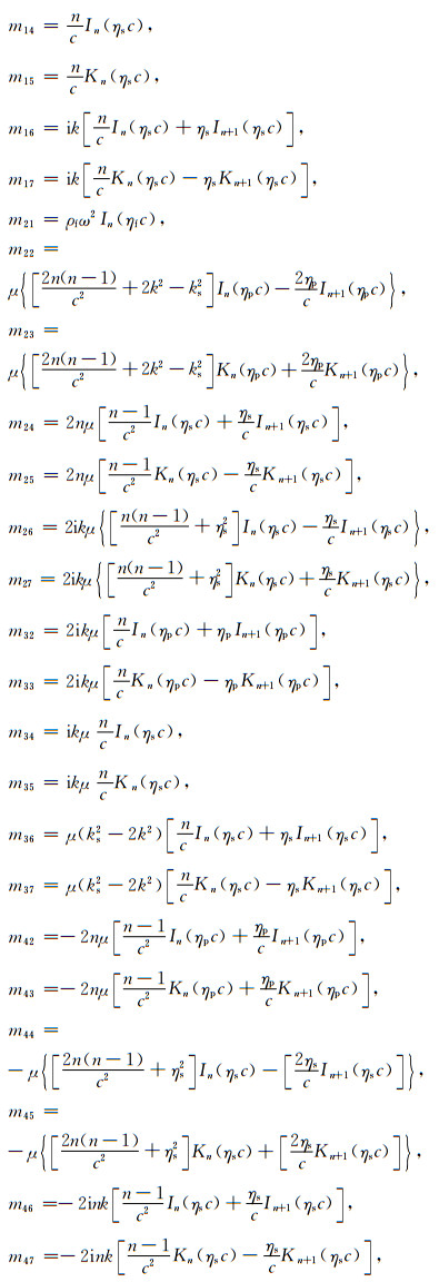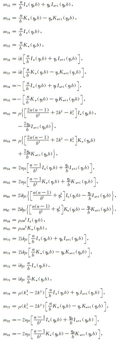 In和Kn分别是n阶第一、第二类变形Bessel函数;ρf是流体密度,vf是流体声速,
