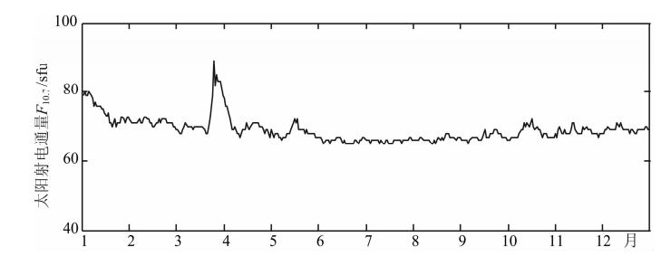 ![]() | 图 10 2008年太阳射电通量F10.7时间变化 Fig. 10 Solar radio flux F10.7 variation with time in 2008 |