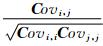 ,Ri,j和C ovi,j分别为格网点i与j之间的相关系数和协方差;