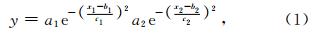 (5)仅考虑格网点之间的相对位置,提取格网点 间的经纬度差与相关系数数据,利用双高斯分布函数