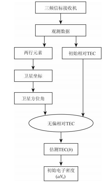纬度范围17°~36°的电离层估测电子密度(以下称为初始电子密度)可由以上6个接收站的接收数据得到.其流程如图 1.