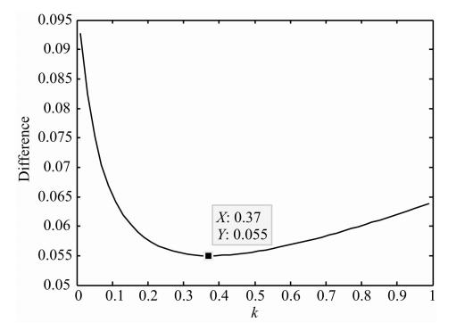 A1 当取flx=95时,误差随kα的变化如图 3.