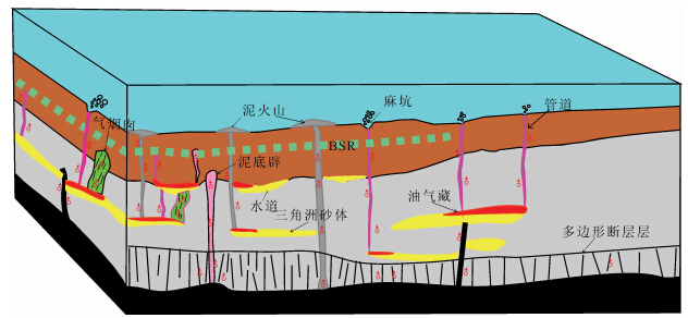 流体活动系统(Focused fluid flow system)在深水油气和天然气水合物成藏、深水地质灾害和全球环境变化等方面的研究中备受关注,从而成为海洋地质科学研究的前沿热点.流体活动系统通常指地震上有明显识别特征的沿着局限的高渗带发生运移/流动的束状流体.它一般发育在封盖性能良好的地层中(低孔隙度低渗透率),在局限的范围内提供流体垂向或亚垂向快速运移的通道.它主要包括泥火山、泥底辟、气烟囱、构造断层、多边形断层、碳酸 盐岩/蒸发岩溶蚀管状通道和砂岩侵入体等多种类型.
