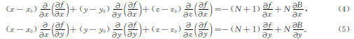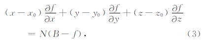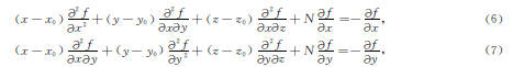 由于背景异常的变化较为平缓,因此其导数项较小可以忽略(Silva and Barbosa,2003).式(4)和(5)可改写为: